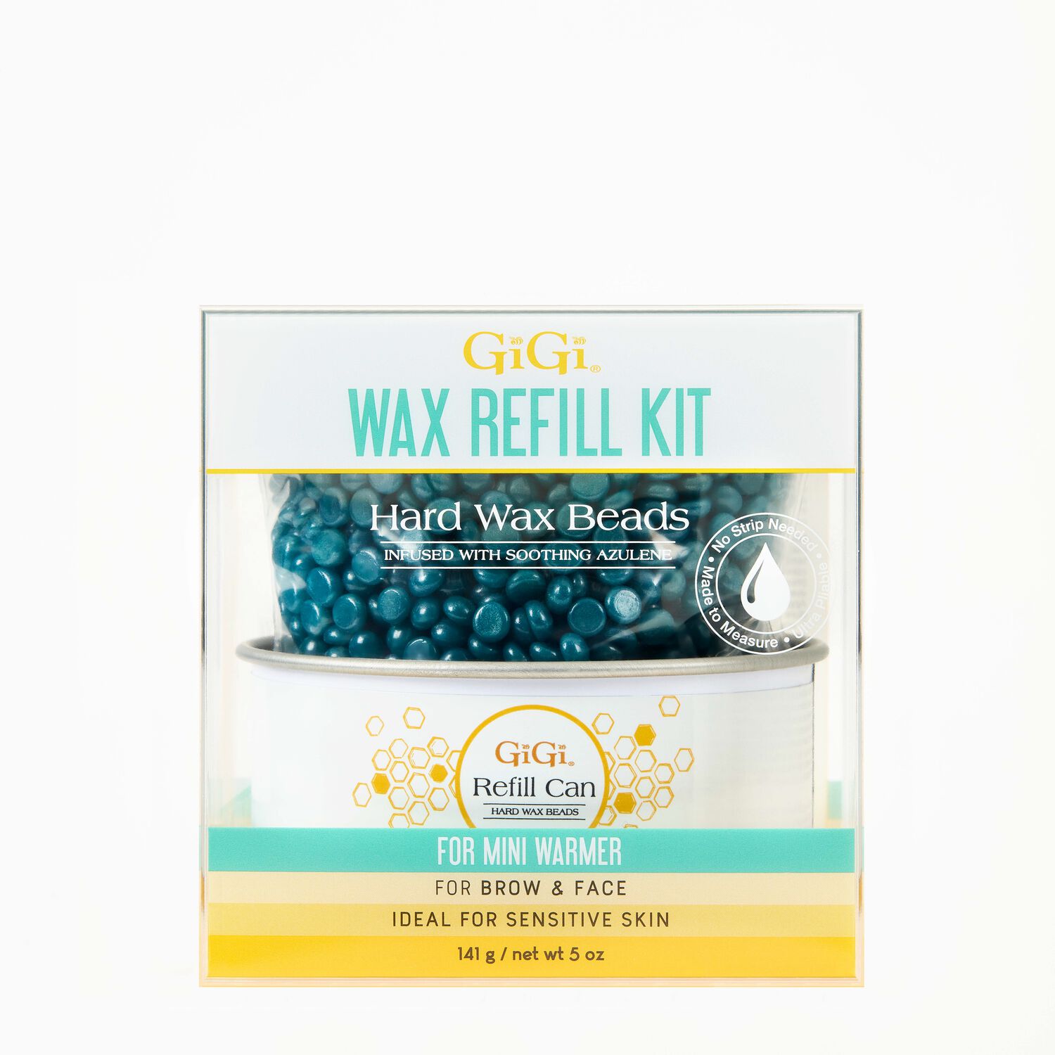 The Wax Refill Kit refills the hard-wax beads and refill can for the Brow Waxing Kit or can also be used with the GiGi Mini Honee Warmer.