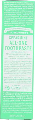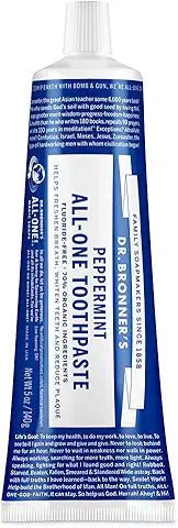 - MADE WITH ORGANIC AND FAIR TRADE INGREDIENTS: Dr. Bronner’s All-One Toothpaste is made with 70% organic ingredients—our low-foaming formula helps whiten teeth, reduce plaque, and freshen breath naturally. Great for daily brushing