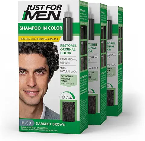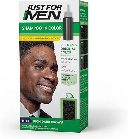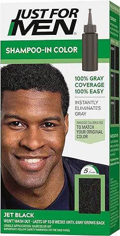 - New look and name, same trusted Original Formula results that will restore your natural color; Just for Men Shampoo-In Color, Real Black, restores your original hair color by targeting gray hair for a natural look unlike other dyes